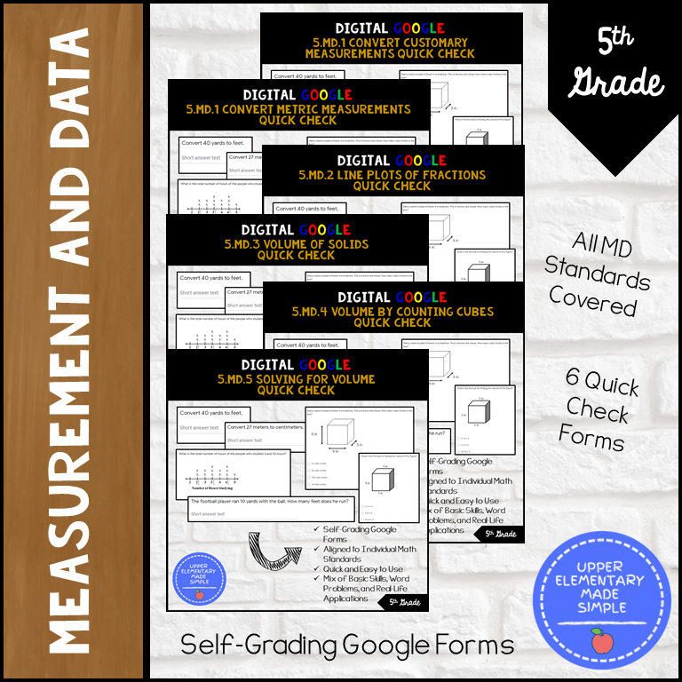 Check out all the Google Forms Quick Checks I have listed and now bundled on Teachers Pay Teachers. The quick checks cover all the 5th grade math standards. You can purchase a quick check individually or try out a bundle of a particular standard domain.